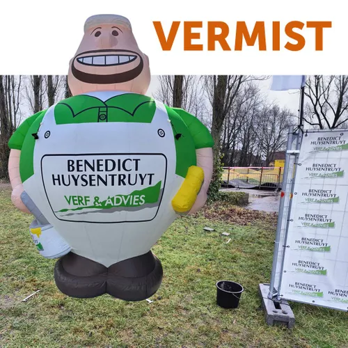 Maar na afloop van de wedstrijd kwam de organisatie tot een jammerlijke vaststelling. Dieven gingen nanmelijk aan de haal met de opblaasbare mascotte van 'Benedict Huysentruyt verf & advies', een verfwinkel in Kortrijk.