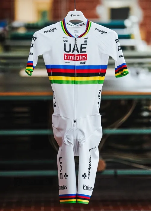 Tadej Pogacar is de nieuwe wereldkampioen. Dat wist u natuurlijk al. Wat we nog niet wisten, is hoe zijn gloednieuwe regenboogtrui er ging uitzien.
