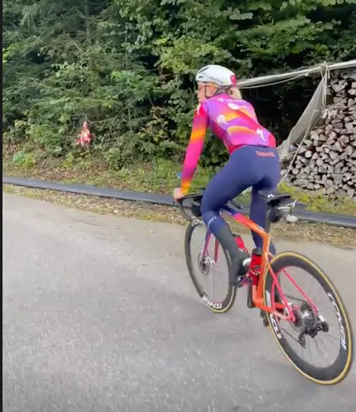 Vollering laat de vele kritiek en verwensingen niet aan haar hart komen. Twee dagen na het WK-debacle deelde ze via Instagram een hoop kiekjes waarop te zien is hoe ze met haar zus Bodine Vollering en partner Jan de Voogd aan het trainen is in de Zwitserse bergen, waar ze ook woont. "Zoekend naar wat afleiding", klinkt het.