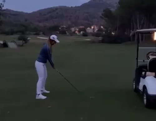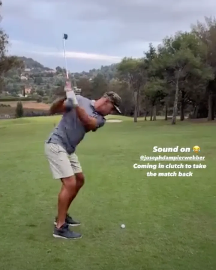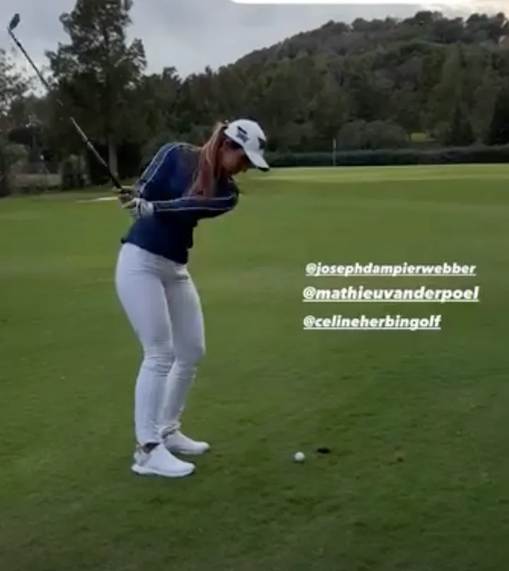 Van der Poel kon rekenen op het gezelschap en de begeleiding van professionele golfspeelsters Leticia Ras en Céline Herbin, en Joseph Dampier- Webber, makelaar in luxevastgoed. De vier hadden hadden het blijkbaar erg naar hun zin, want ze bleven spelen tot het donker was. Let ook op de nieuwe haarkleur van Van der Poel! (Beelden onderaan)