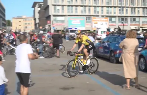 Van Aert bolde pas als 129e over de streep en was duidelijk gefrustreerd. Hij weigerde de aanwezige journalisten te woord te staan en reed recht naar de bus. Een opdringerige fan zet hij op z'n plek door 'behind' te roepen. (beelden onderaan)