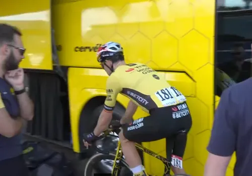 Weinig blije gezichten bij Visma - Lease a Bike na afloop van de vierde etappe in de Giro d'Italia.