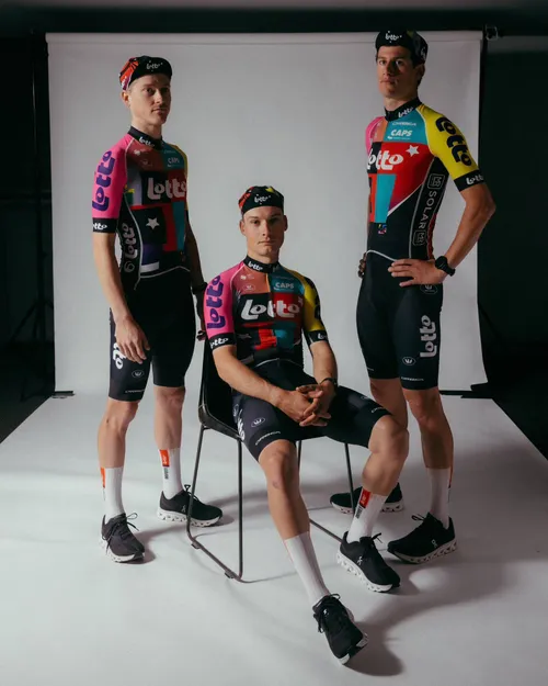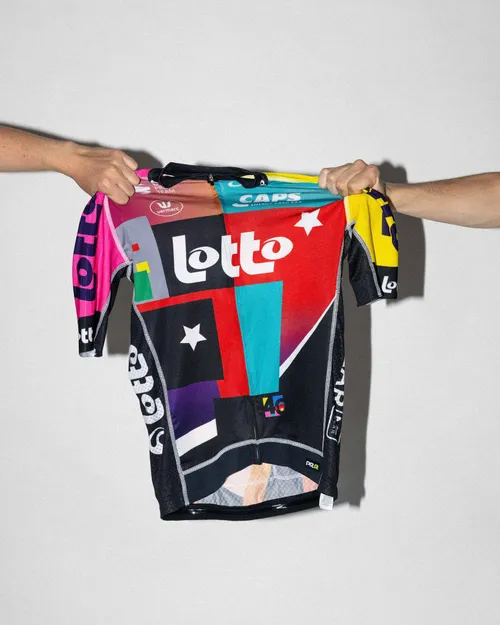 Bij dat unieke jubileum hoort een unieke trui. In het ontwerp is het design van oude truien terug te vinden. Het zalmroze van Predictor Lotto, het fluo van Lotto-Super Club. De blokjes van Lotto-Caloi, de vlam van Lotto-Adecco en de iconische sterren van het allereerste Lotto-Eddy Merckx uit 1985.