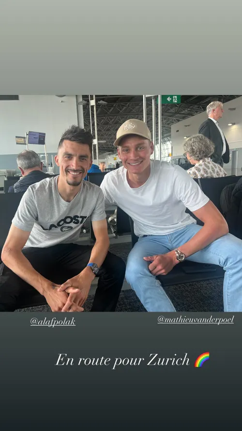 Mathieu van der Poel en Julian Alaphilippe reisden vandaag met het vliegtuig naar Zürich. De twee schaduwfavorieten liepen elkaar op de luchthaven zelfs tegen het lijf en nemen dus blijkbaar dezelfde vlucht.