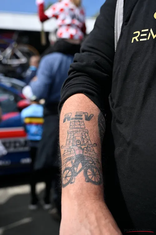 Tussen die menigte was een wel heel vurige fan terug te vinden. De man had op zijn arm een tattoo van de iconische finishfoto op de olympische wegrit in Parijs. Evenepoel veroverde toen goud en stapte vlak voor de streep van zijn fiets met de Eiffeltoren op de achtergrond.