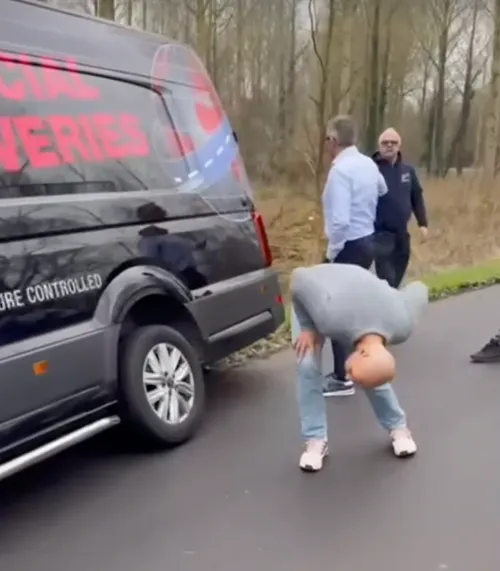Tom Boonen, Ruben Van Gucht, Dirk De Wolf, Mark Uytterhoeven en nog een paar andere mannen zijn namelijk met een bestelwagen van de baan geraakt op een smal weggetje dat door een bos loopt.