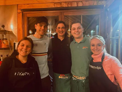 "We hebben toen voorgesteld om alles op dienbladen te brengen naar hun busjes op de parking. Wat Wout precies besteld heeft weet ik niet, want het was een zeer grote bestelling. Ook zijn vrouw Sarah en zijn twee kinderen waren van de partij. Ik hoop dat ze ervan genoten hebben.”