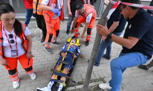 Landa kwam aan hoge snelheid ten val in een afdaling in de finale en bleef even roerloos op de grond liggen. Meteen was duidelijk dat zijn Giro voorbij was, nog voor die goed en wel begonnen was.