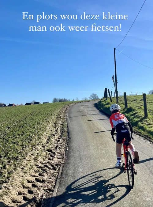 “Dat is al héél lang geleden. Ik heb de afgelopen dagen een inspanningstest gedaan en ik mag terug een beetje sporten. Niet te lang, niet te snel, maar daar ben ik al heel blij mee. De conditie is helemaal weg, en dat is helemaal oké want we gaan rustig opbouwen. Ik ga ervan genieten."