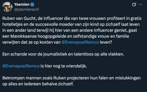 "Ik weet niet waar jij je verhalen vandaan haalt, Ruben. of is het soms moeilijk voor jou te geloven dat een Marokkaanse familie gewoon hard gewerkt heeft en wélgesteld is? Dat zegt meer over jouw beperkte wereldbeeld dan over de realiteit."