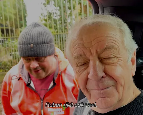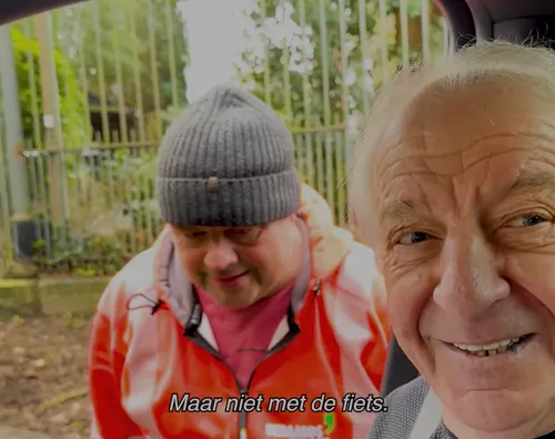 "Amai José, je staat scherp", zegt één van de gemeentearbeiders. "Trainen hé man, trainen", antwoordt De Cauwer. "Hoe ouder hij wordt, hoe scherper hij staat", voegt Vannieuwkerke eraan toe.