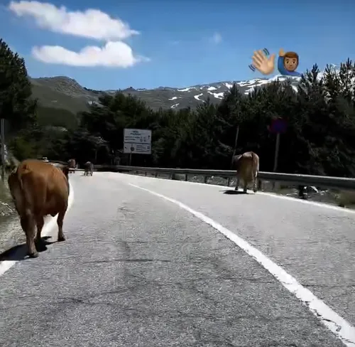Dinsdag beleefde Nys een bang momentje. Toen hij in het zonnige weer een berg aan het beklimmen was, liep hij plots een kudde loslopende koeien tegen het lijf. Die liepen zomaar op een brede weg met twee rijvakken.