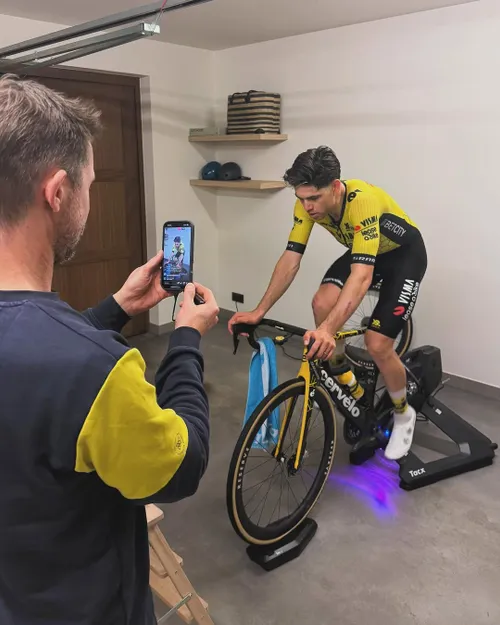 Verder ging Van Aert trainen - hij ging o.a. gravelen in de Zwinstreek - en crosste hij in Maasmechelen. Tot slot bracht hij een bezoek aan bv-kapper Roel Melis.