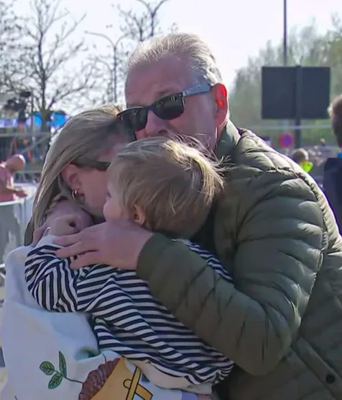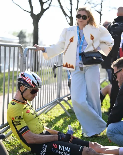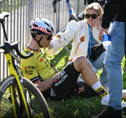 Na de finish was Van Aert zichtbaar ontgoocheld. Hij plofte zich uitgeput neer op het gras en moest getroost worden door zijn echtgenote Sarah De Bie. Sarah had het meteen na de finish ook even moeilijk. (beelden onderaan)