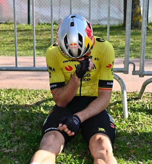 Wout van Aert heeft de indrukwekkende coupe van Visma - Lease a Bike in Dwars door Vlaanderen niet kunnen afmaken. De Belg was na afloop diep ontgoocheld.