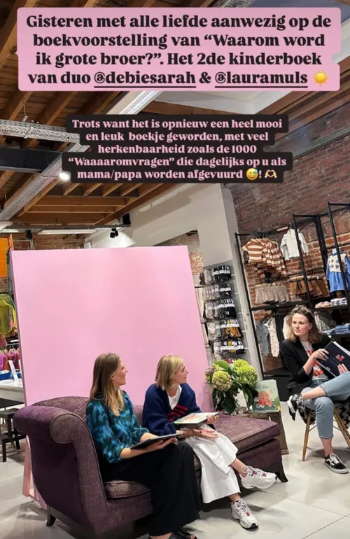Omdat het boek zo'n succes was, begonnen De Bie en Muls een tweede kinderboek. "Waarom word ik grote broer", heet de titel. Dat tweede kinderboek werd gisteren voorgesteld in het bijzijn van haar vriendinnen.